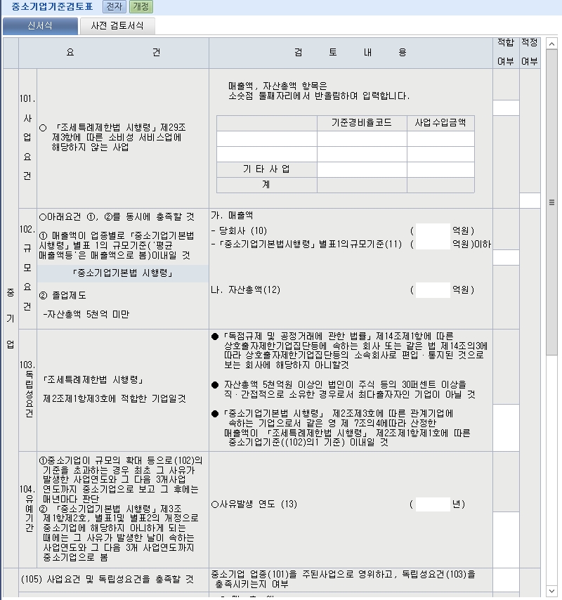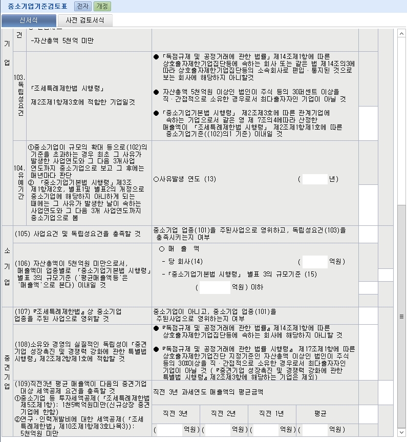 1) 「조세특례제한법」에 따른 중소기업의 요건은?