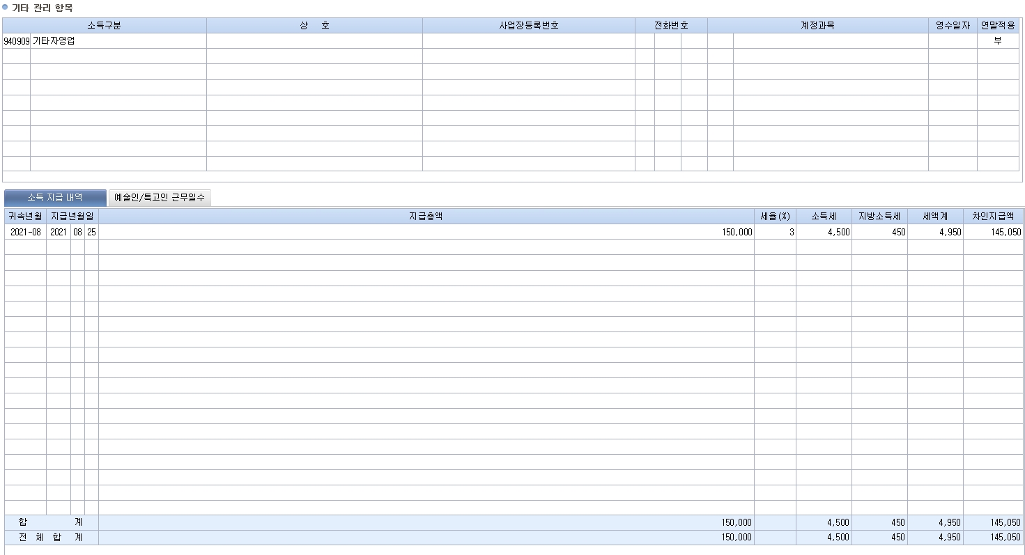 위와 같이 계산하여 원천징수를 제외한 금액을 용역을 제공한 자에게 지급합니다.